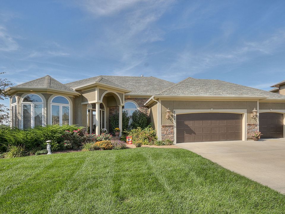 Gorgeous Custom built home in Hawksbury Estates across from Tiffany Greens golf course and 10 minutes to airport! This home is a custom built reverse ranch on oversized lot with many upgrades including random length hardwood floors, 12 Foot ceilings (main level), custom trim, granite and all stainless. In-ground sprinkler system, beautiful landscaping and large back yard make this an all around terrific home in a conveniently located neighborhood.