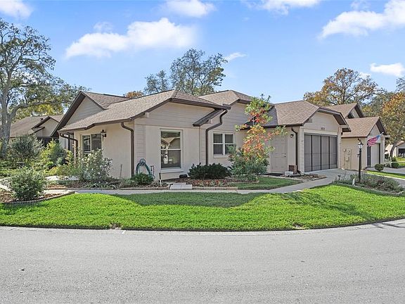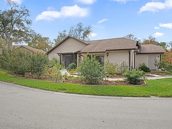 PENDING IT'S HERE!! The villa you have been waiting for! This spacious, Nottingham Model, free standing villa is on over sized corner lot, located in desirable Manor Pines Village. This village has it's own Geothermal heated and cooled pool. ENJOY the beautiful gardens as you enter the screened double door entrance. Light, bright and meticulously maintained, this villa has VAULTED ceilings, all updated with knock-down texture. You'll love the floor plan to include additional enclosed lanai of the spacious master Bedroom The Master has enlarged closets going into Master bath with CORIAN counter, garden tub, and separate shower with raised floor. SOLAR TUBES bring welcomed additional lighting to both bathrooms. You will enjoy cooking in the generous with QUARTZ countertops, oversized pantry complete with pull out drawers for storage. Relax and enjoy the kitchen nook that opens onto the family room and patio. New windows, blinds, water heater, 6 inch gutters, garage door opener, garage door screens, garage entry door, ceiling fans. carpet, surge protector on electric panel, all outlets replaced,new comfort height toilets ...all newly replaced for you. Termite warranty is transferable, as well as the Krueger A/C warranty. Remaining furniture in the villa is included. There's plenty of garage storage with mounted cabinets and floored storage in the attic. You are all set for Thursday Coffee hour at the Pool. CALL TODAY!! Included in HOA: 2 Spectrum cable boxes and highest speed internet. Timber Pines is Premier Golfing Community boasting 4 golf courses, Country Club, Restaurant, Performing Arts Center, Activity Center. New Physical Fitness Center, Billiards, Tennis, Pickle Ball, over 100 clubs and so much more.
