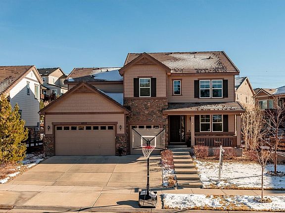Welcome Home to this 6 bed (one on the main floor!), 5 bath home situated on a quiet cul-de-sac adorned with large ponderosa pines and lush landscaping all around. Walk in to find hardwood floors throughout the main, 9' ceilings, 8' doors, upgraded lighting and vaulted ceiling in the entry. The spacious dining area with bay window is connected to the entertainer's kitchen by a pass-through butler's pantry with glass front cabinets, secondary sink and wine fridge. The kitchen has a large island with seating, stainless steel appliances, gas cooktop with hood and eat-in kitchen area. Enjoy the large great room with fireplace and custom tile surround. Main floor bedroom currently used as an office with nearby full main floor bath. Main floor laundry. Upstairs you will find a large loft with a dedicated secondary office space, 2 secondary bedrooms that share a full bathroom as well as another guest bedroom with en suite 3/4 bath. The primary retreat rounds out the upper level with fully remodeled in 2021 bathroom including custom shower door and custom walk-in closet. Don't forget to check out the huge finished basement that is complete with a large rec room, another bedroom with full bath, bonus/theater room currently used as a gym and 3 separate storage areas. The large backyard has extensive professional landscaping with lots of trees for shade and privacy as well as a privacy wall, gas fire pit, stamped concrete patio that is partially covered, gas line for grilling, wiring for hot tub and outdoor television. Move in ready! Newer carpet! Close to Southlands Mall, shops and restaurants, E-470 access, 25 minutes to DEN, 20 minutes to the DTC and 15 minutes to Park Meadows mall!