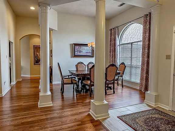 This stunning home is situated in the Stonetrace subdivision of Bartlett, offering convenient access to nearby amenities. This charming single-story home has 3 bedrooms, 2 bathrooms, and a split floor plan that highlights spacious living areas and thoughtful design elements throughout. As you enter, you are greeted by an elegant foyer that flows into the expansive dining and living rooms, featuring high ceilings, archways, and decorative columns. The roomy kitchen seamlessly connects to a cozy hearth room with a fireplace, perfect for entertaining family & friends. The generous primary suite includes a luxurious spa-like bathroom and a bedroom with soaring ceilings, providing ample space for relaxation. Completing this remarkable home are two additional bedrooms and a bathroom. Recent updates include carpeting in the bedrooms and engineered wood flooring. You will appreciate the calming neutral paint colors and lighting that enhance the home's atmosphere.This home is truly a must-see.