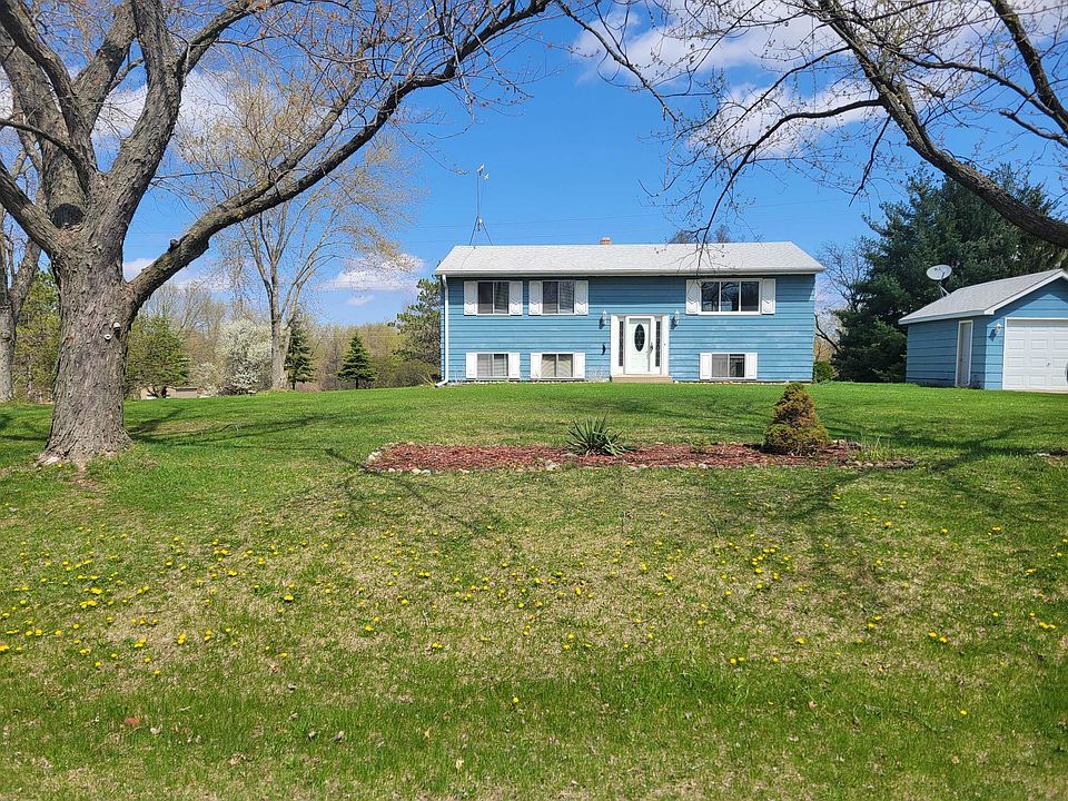If your looking for country living run don't walk to this 4 bedroom 2 bath home on large corner lot. Welcome to this spacious and beautiful bi-level home situated on a one-acre lot. This home offers four bedrooms and two bathrooms, providing ample space for a large family or guests. As you enter the main level, you'll be greeted by an open and airy living room, featuring large windows that allow natural light to flow throughout the space. The living room leads into the dining area, which is perfect for family dinners and entertaining guests. The kitchen is open to the dining area and living room with lots of windows to let in the light. Plenty of cabinets and counter top space. The primary bedroom is located on the main level and features a large closet There are one additional bedrooms on this level, Each bedroom offers beautiful views of the surrounding landscape. The lower level features a spacious family room, perfect for relaxing and spending time with loved ones. The other 2 bedroom is located on this level, along with a second full bathroom. Outside, you'll find a sprawling backyard that provides plenty of space for outdoor activities and entertainment. This beautiful property offers the perfect combination of indoor and outdoor living, making it an ideal home for any family. Having an extra garage offers ample storage space as well. Sold as is. The large mirror in entry is staying.