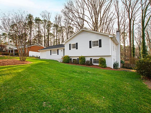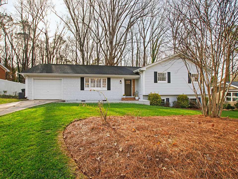 This charming home with irresistible curb appeal, nestled in the sought-after North Haven neighborhood in the heart of Raleigh is the total package! Just minutes from North Hills, this beautifully remodeled 5-bedroom, 3-bathroom floorplan sits on a half-acre lot offering mature trees and landscaping, multi-tier deck, fenced backyard, and cozy firepit. Inside, you'll find a spacious and inviting layout. The home was extensively remodeled in 2019 and features a large, open main living area with white, bright interiors. The kitchen boasts granite countertops, white cabinetry, a large island with bar seating and storage. Find four generously sized bedrooms on the upper level offering closet space hard to find in this year built. On the lower level, you're greeted by a large bonus space complete with wood burning fireplace with gas starter and built in bar - the ideal space for family gatherings or movie nights. This home is loaded with updates, including a new water heater and roof in 2019, and a brand-new HVAC system installed in 2023. The one car garage is the perfect storage solution with built in workbench, shelving and storage closet. Located in the center of Raleigh, you'll enjoy close proximity to shopping, dining, parks, and greenway trails, with easy access to I-540 and I-440 for seamless commutes. This rare find offers the total package - space, style, and an unbeatable price point.