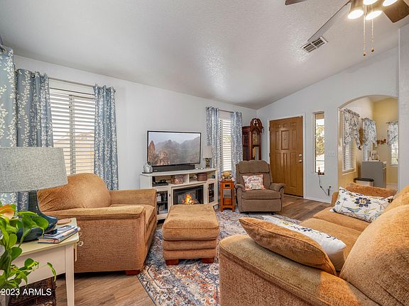 This home is absolutely beautiful and ready to move in. It sits on a large corner lot and boasts an open floor plan and Luxury Vinyl Plank throughout. The kitchen is bright and sunny with granite counter, prep island and pass through to main living area plus space for kitchen table. The backyard is a lovely retreat that you can access through the expanded sun room. Large Primary BR with private ensuite & walk in closet. There are also two guest Bedrooms plus a full guest bath. Direct access to the two car garage. All single level!