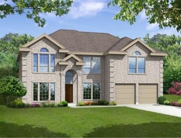 MLS# 13031104 - Built by First Texas Homes - Ready Now! ~ Includes lots of extras...California kitchen, butler's pantry with upper cabinets with glass doors, curved stairway with Juliet balcony, metal stair railings, wet bar in media room, double ovens, five-burner cook top, covered patio with vaulted ceiling, outdoor brick fireplace on patio, gas stub on patio, two separate garage doors, 42 in fireplace, and wood floors