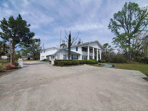 Large home on over 3 Acres of beautiful land with its own pond located just over the Bailey Bridge. Ideal location and plenty of privacy. 5 bedrooms with 4 full bathrooms, formal dining room, sitting room, den, kitchen with breakfast nook, large office with closet which could be used as another bedroom. Above attached garage is an entire mother-in-law suite with its own bathroom and kitchen. Back patio and deck, along with shed at the rear of the property. **Hurricane Damage** Home is taken down to the studs in the areas of the home that experienced water damage. (All 5 Bedrooms in the main part of house) Holes in roof have been repaired and shingled, however, homeowner did not fully replace to allow for the buyer to place a metal roof if preferred.