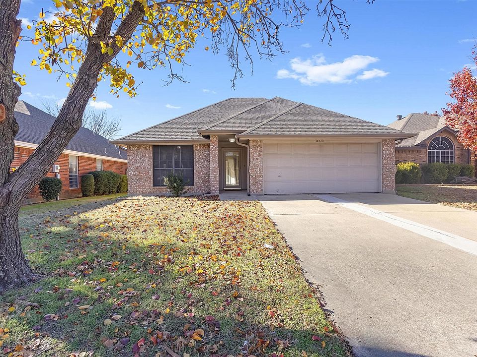 Welcome home to this charming 3-bedroom, 2-bath home with a 2-car garage in desirable Keller ISD. This light and bright, open concept offers a split primary floor plan with a spacious primary suite featuring a large walk-in closet and ample storage throughout. Enjoy the open living and dining area, a kitchen with breakfast nook, and a cozy wood-burning fireplace. Relax under the covered patio to the large backyard on pleasant days. Recent updates include new laminate hardwood flooring throughout, new dishwasher, stove, garage door opener, and a new roof in 2023. Conveniently located near shopping, restaurants, and easy access to Hwy 183 and I-35W. Perfect home for a first time home buyer or downsizing. Buyer and buyers agent to verify measurements and schools.