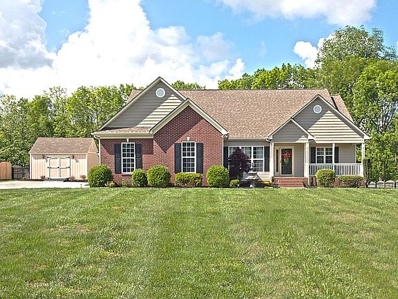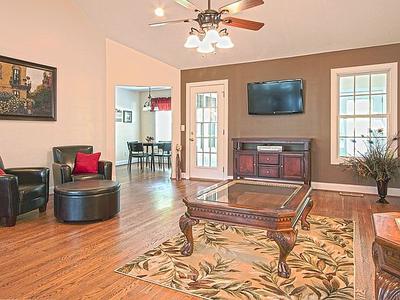 You feel at home as soon as you walk in the door with a rocking chair front porch, and a split bedroom plan. Freshly painted, new carpet, hardwoods, a beautiful sun room, w/ an added 2nd deck outside. This home could not be more perfect for a relaxing evening outside, or for entertaining. Quiet street with immaculate front yard. Fenced in backyard, with extra storage/shed unattached to house.