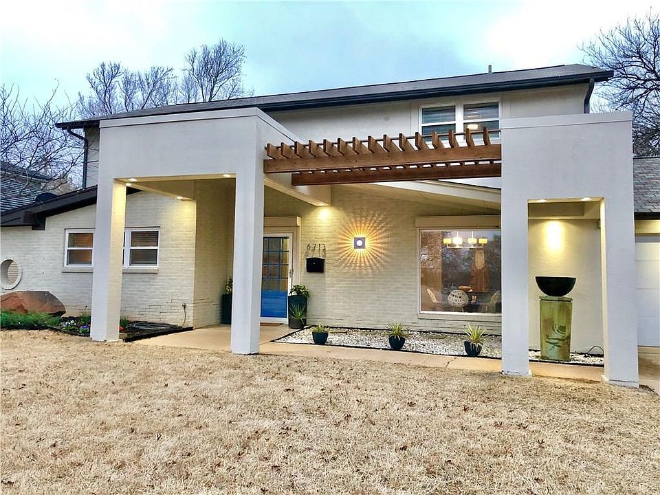 Don't miss this updated Mid Century modern home in highly sought after Edgewater Estates. This Incredible Home has an oasis of a backyard w/ hot tub, heated pool & covered patio, state of the art kitchen including upgraded 6 burner KitchenAid Professional range, New LED vent hood, Quartz countertops, soft close sleek cabinets & doors, pot filler, lighted cabinets in island & bar. Other standouts include a beautiful gas fireplace w/ glass crystals, Vivint security system, Honeywell smart thermostat & motorized storm shutters, soaking tub,hot tub/heated pool (Heater NEW) & NEW hot water heater. Original 4th bedroom serving as an amazing closet suite w/Wardrobe storage & laundry room (conveniently located upstairs). Location of property is perfect for work & play! Easy walk to Lake Hefner & access to Lake Hefner parkway/I-44 and NW Hwy plus minutes from Classen Curve. Make this little slice of paradise your new home! Buyer to verify schools. Agent is related to the seller.