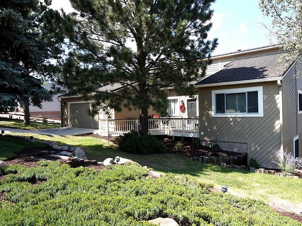 THIS FABULOUS HOUSE HAS EVERYTHING! Walk into the Custom Tiled Entry Way and Grand Vaulted Ceiling with Skylights. Enjoy 4 Bedrooms, 3 Remodeled Bathrooms & A Soaking Tub, Formal Living Room, Formal Dining Room, Remodeled Kitchen with Gorgeous Corian Counter Top System, Kitchen Island, A Unique Spice Cabinet, Convection Ovens, Gas Range Top, Two Walk Outs from Kitchen & Family Room onto the Glorious Large Trex Deck surrounded by Trees offering Privacy. DECRA Stone Coated Steel Metal Roof. AMAZING!! Get Cozy on those cold Colorado nights sitting next to your Wood Burning Fireplace with Mantel, Tile surround and Built Ins. Separate Utility Room with a Window, Built In Shelving, Cabinets plus Washer & Dryer included. This Elegant Home also comes with Closet Organizers and much more. Tons of Storage in addition to a Crawl Space plus the Walk Out Basement. Award Winning District 20 Schools and Central Air. Make this Fantastic Rockrimmon Home yours Today!
