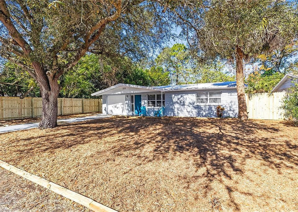 Come see this charming 2 bedrooms with a bonus room, 1 bathroom block home ideal for those seeking comfort and convenience. This residence features a nice floor plan, including a spacious kitchen and an inviting kitchenette, perfect for daily living and entertaining. A standout feature of this home is the versatile bonus room located just off the kitchen, offering ample space for a home office, playroom, or additional storage. The property also boasts a private, fenced-in back yard accessible through sliding doors, providing a serene outdoor retreat for relaxation or gatherings. Additionally, a converted garage enhances functionality with a separate laundry room and a generous closet, offering excellent storage solutions. This home is conveniently located to shopping, dining, medical facilities and recreational sports, only 5-10 min bike or golf cart ride will get you to the Sim's Park and downtown New Port Richey and it's nightlife. Beautiful FL beaches are within short drive, making it perfect for first-time home buyers or those looking to downsize without compromising quality. Flood insurance is not required for this property, it was not flooded or damaged during recent hurricanes. Don't miss the opportunity to experience the charm and practicality of this exceptional home. Schedule your visit today!