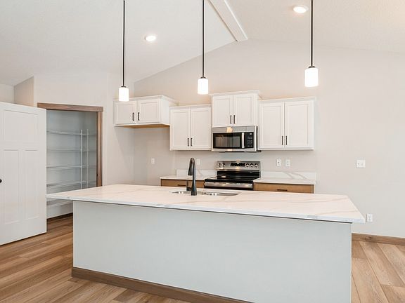 Discover this brand-new construction home located in the sought-after College Community school district. This thoughtfully designed home features luxury vinyl plank flooring throughout the main level's common areas. The kitchen offers a modern look with dark base cabinets, white upper cabinets, Quartz countertops, and stainless-steel appliances. An electric fireplace in the Great Room creates a cozy ambiance, perfect for relaxation. The open staircase leads to an unfinished lower level, ready for you to personalize and make your own. This home is a blend of style, comfort, and potential—don’t miss it!