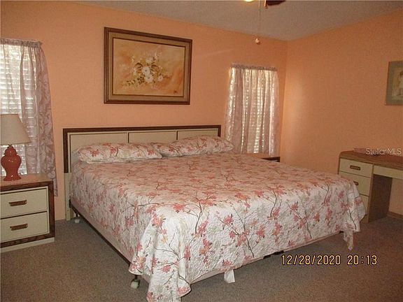 Home is ready for new buyer! This 2 bedroom 2 bath home close to the heated community pool. Nice up-dated club house, pool tables, library nice kitchen. Watch the sun sets or the fireworks from the pavilion. Good fishing lake with pier and boat slips! Waiting list but other places to dock your boat! Affordable living! NO LOT RENT you own your lot, on city water and sewer, Low taxes for seniors, no pet community! mail box in front of your home. 45 min to Orlando airport and little over a hour to each coast! Shopping and theme parks and really nice newer Library