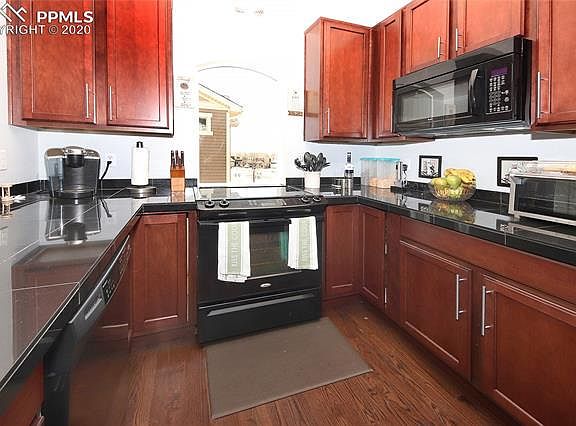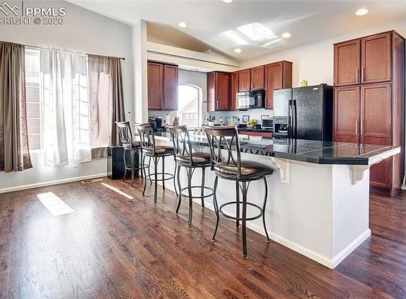 Welcome home to your 2-Story in Banning Lewis Ranch! This home has a very open floor plan with beautiful wood floors, stunning kitchen cabinets, granite-top counter bar and great mountain views. The master bedroom has a walk-in closet and 5-pc. bath. The laundry area has an added bonus that can be used for whatever you need. This home has beautiful landscaping, upgraded artificial turf in the backyard and the garage is insulated. This home is sure to please any buyer that is looking for a place to call their home!