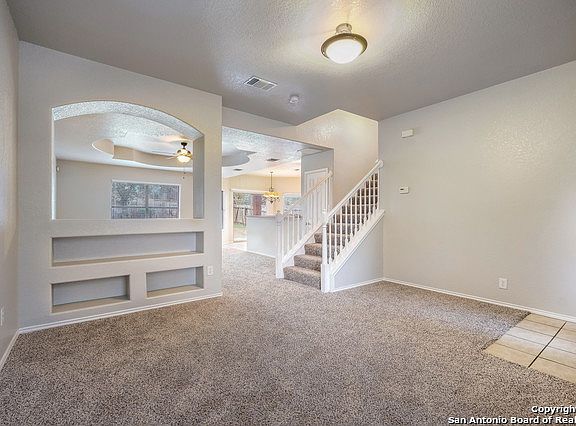 Neat, clean and ready for move-in. Expect the unexpected with this charming 2 story home. New carpeting. Multiple living/dining spaces. Custom ceiling work in family room. Great kitchen layout with island, breakfast bar and tons of cabinetry. Oversized breakfast nook overlooks the covered back porch and fabulous backyard. Generous master suite features walk-in closet and double vanity. Fantastic NC location with easy access to 1604, I-35, Randolph, shopping and so much more. Make this beauty yours today!