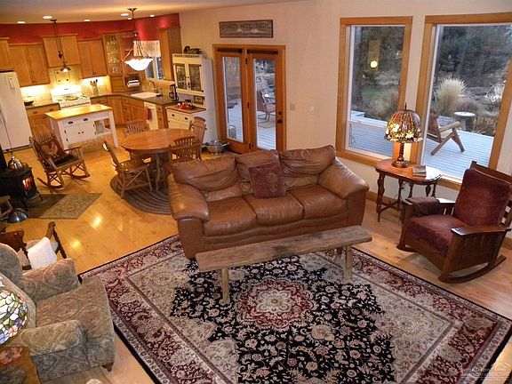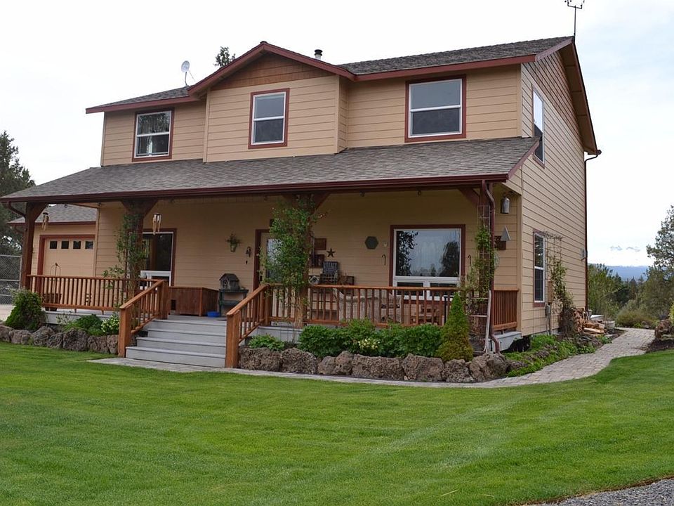 More Than Can Be Imagined!! Lovely 2150 sq. ft. home with 3 br, 2.5 ba, vaulted ceiling in great room, loft and hdwd flrs on 5 fenced and cross fenced acres. Guest house with kit., ba., 2 bedrooms,and large deck. R/V barn with full hookups, large heated shop with 200 amp service, sink, toilet, washer and dryer and abundant storage. Barn, chicken coop, goat barn all with elect. and metal roofs. 2 ponds, water feature and dramatic views of the 3 Sisters Mt. from the kitchen, great room, and guest house.