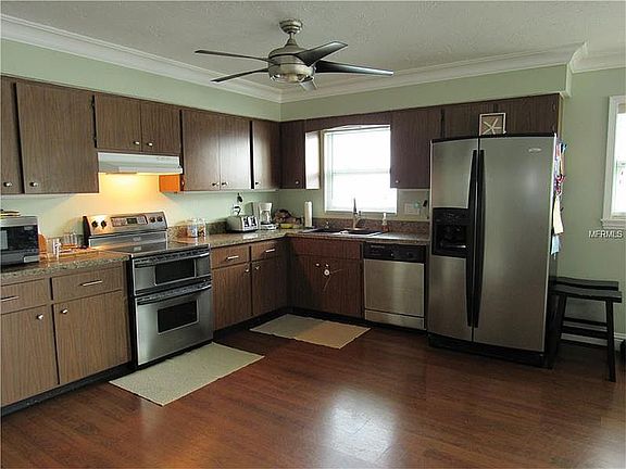 WARNERS BAYOU WEST waterfront home. Private dock and seawall, approx. 60 feet of water frontage. After you pass under the 59th Street bridge (10ft-12ft clearance) you have easy access to the Manatee River then the Gulf. Relaxing environment, just sit back and fish from your dock. New PVC side fencing. Home has updated guest bath, laminate flooring, AC in 2012. Open great room design incorporates kitchen, dining, and living areas. Large glass enclosed lanai with tile floors. One car garage plus carport. Great Northwest Bradenton location, close to shopping, Fresh Market, and Gulf Beaches.