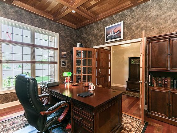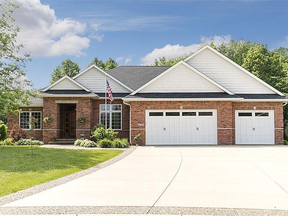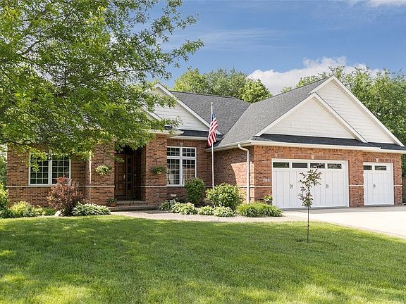 Absolutely stunning former Parade Home on .80 acres that backs to mature trees & Squaw Creek. Brazilian cherry hardwood floors throughout the hallway, den, kitchen & daily dining area. You will be welcomed by the spacious great room with floor-to-ceiling stone gas fireplace, built-ins, tray ceiling & big wall of windows. Den or formal dining room with French double doors & coffered ceiling just off the foyer. Gourmet kitchen with Thermador stainless steel appliances, granite countertops, tile backsplash, island/breakfast bar, butler's pantry & daily dining area with direct access to the screened-in porch. Convenient main level laundry room with utility sink & cabinets. Spa-like master suite with tray ceiling, walk-in closet, jetted tub, tile floors, & dual vanity. 2 additional bedrooms & a full bath completes the upper level. Walkout lower level rec room with 2nd fireplace & wet bar. Lower level also features 2 bedrooms, a bonus room, & bathroom with dual vanity. Beautiful, private yard features a patio & all composite deck with wrought iron railings & spiral staircase. Upgrades include: cherry woodwork, white trim, solid cherry 8 panel doors throughout, crown molding, security, sound, irrigation, central vac, & much more. Enjoy county taxes but with city water & sewer.