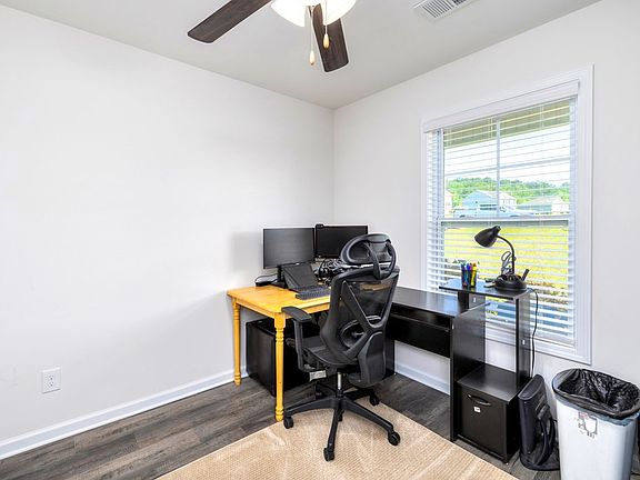 Beautiful like new GSH Lindler plan features 4 bedrooms, 3 full baths! Luxury vinyl flooring throughout main floor to include foyer, dining, bath, kitchen, and living room. Spacious kitchen with island opens to family room and formal dining. Home office and a full bath are also located on the first floor. Owners suite with private bath and double closets, laundry, and 3 additional bedrooms are located upstairs with flex space at top of stairs. This home is built to National Association of Home Builders Green Standards for energy efficiency including home automation. Rear deck overlooks beautifully landscaped yard with storage shed. This home has been meticulously maintained and move-in ready! VA loan assumption of 3.5% available w/ qualification.