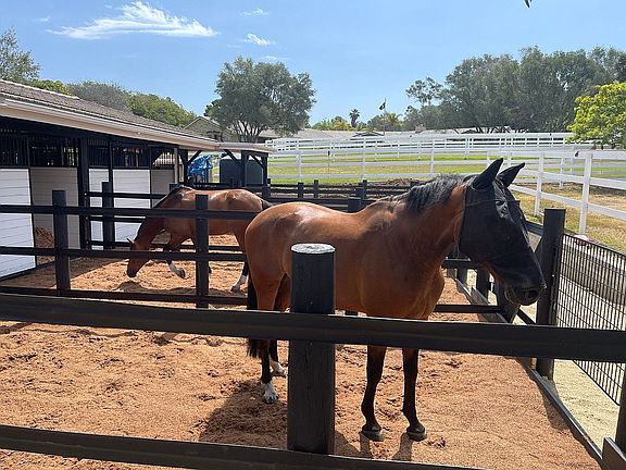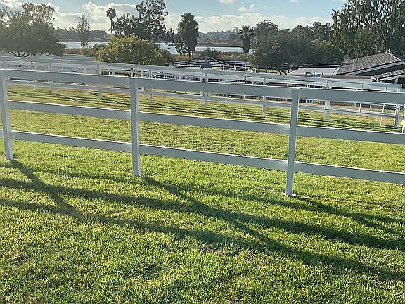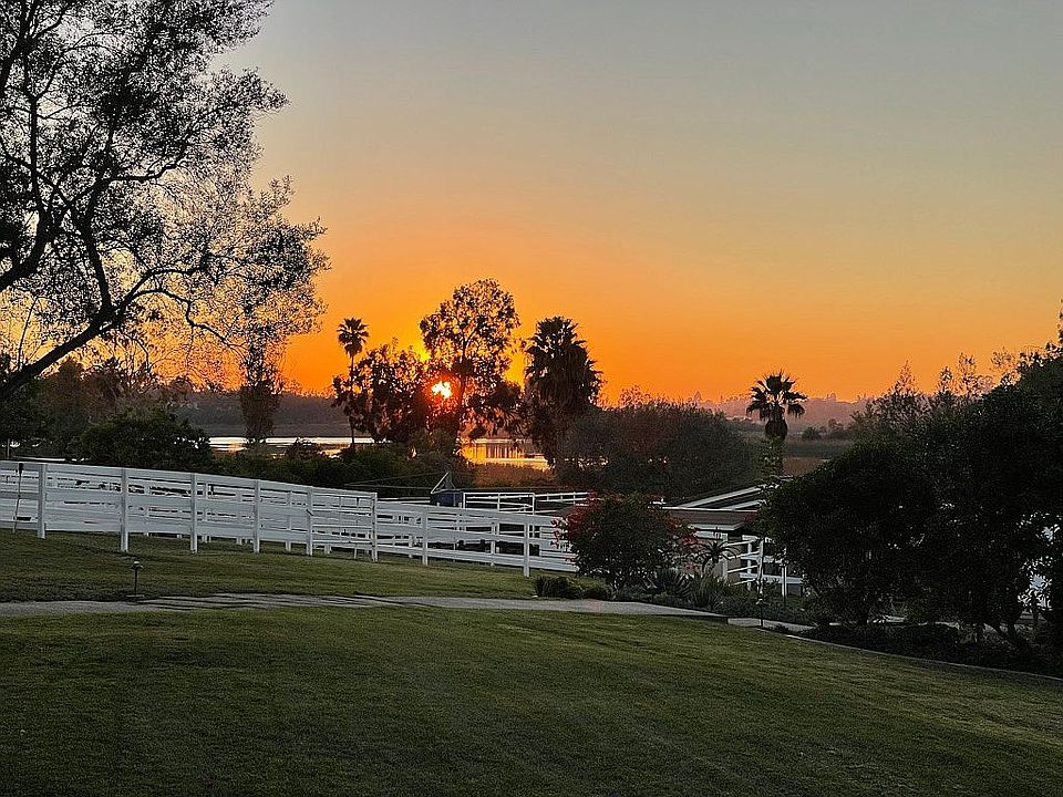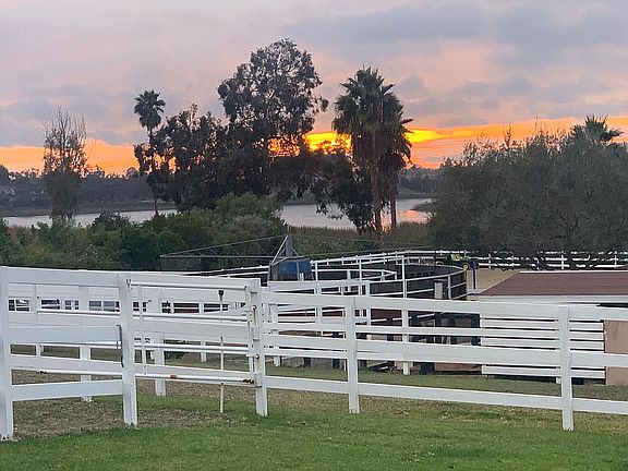 Single level home with a functional, versatile floor plan for comfortable living easy entertaining, an idyllic storybook setting with sunset views over the sparkling reservoir, rolling lawns irrigated with well water, a private resort-style backyard with pool, BBQ, volleyball, putting green, chipping mat, and a detached 1,211 SF, 2BR/2BA guest house with kitchen and living room. Equestrians will love the 5-stall barn w/in-and-out stalls, 5 fenced pastures arena. From the gated entrance to the grassy pastures and flowering foliage, these grounds are enticing and welcoming. The property layout was designed to take full advantage of the sparkling reservoir views and usable acreage while simultaneously preserving the private enjoyment of the more intimate backyard settings. The impeccably kept horse amenities create a captivating first impression and equestrians will love the 5 stall barn which includes 4 in-and-out stalls, rubber pavers, tack room, laundry room, extra wide built-ins for bulky blankets, tractor and hay storage. The 77' x 187' arena has been recently renovated with laser grading and all-weather footing and has a viewing area. In addition to the new perimeter fencing, all five well-irrigated grass pastures have new fencing, there is a new Euro-walker, two cross ties, and two wash racks with hot and cold water. The driveway is wide and allows for horse trailer turnaround. Although the equestrian facilities are top-of-the-line, you don't have to be a horse enthusiast to appreciate the beauty, usability, value, and customizable potential of this property. The two bedroom guest house (second bedroom has an armoire in lieu of a closet), doubles as a pool house/game room with a fully functional kitchen with service window to the patio area.