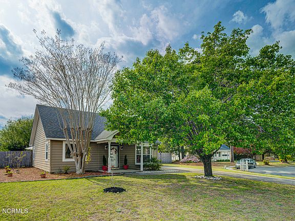 Welcome to this light and bright single family home! This home features a large living room with vaulted ceilings, kitchen with stainless steel appliances and a bay window! There are also 3 bedrooms and 2 full baths. Enjoy the fenced backyard with a patio and a fire pit! This home features solar panels and a level 2 electric car charger at the driveway. Great location convenient to Wrightsville Beach and Downtown Wilmington!! Information about the solar panels is located in the document section of the listing.