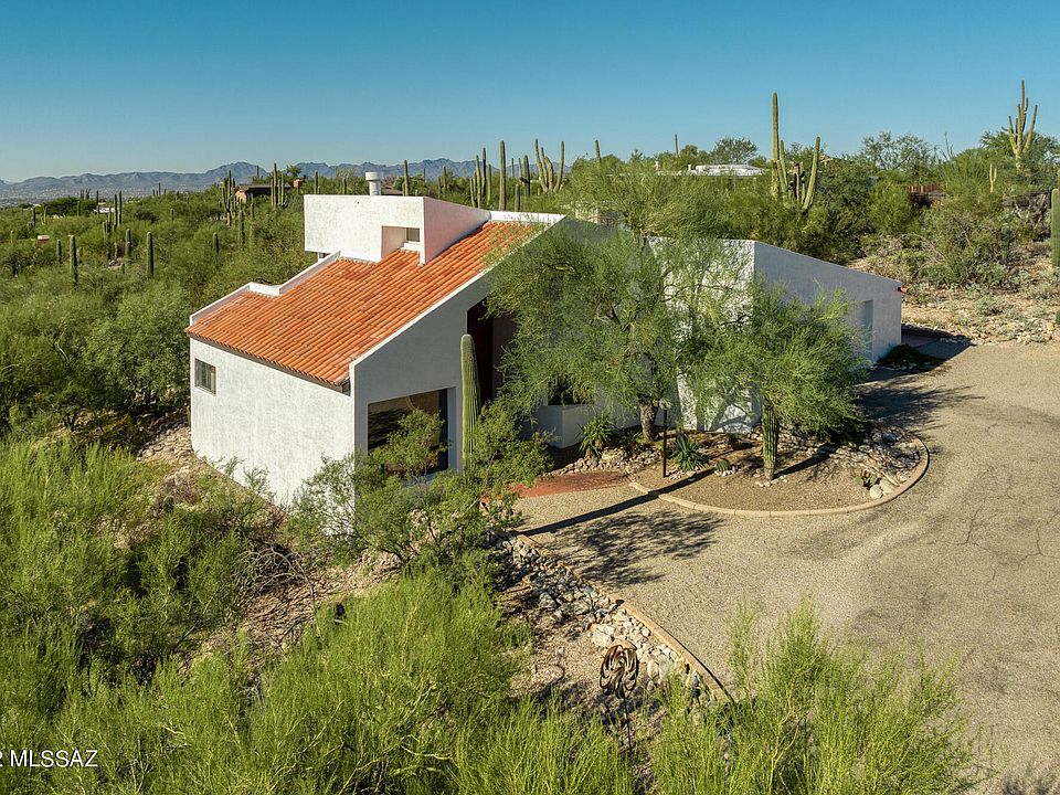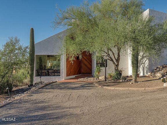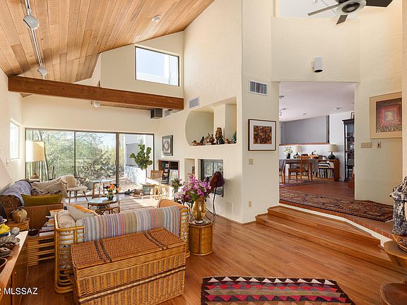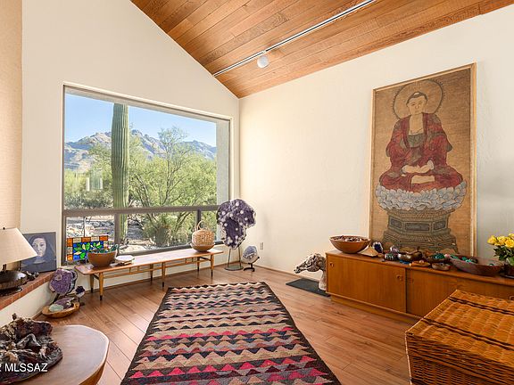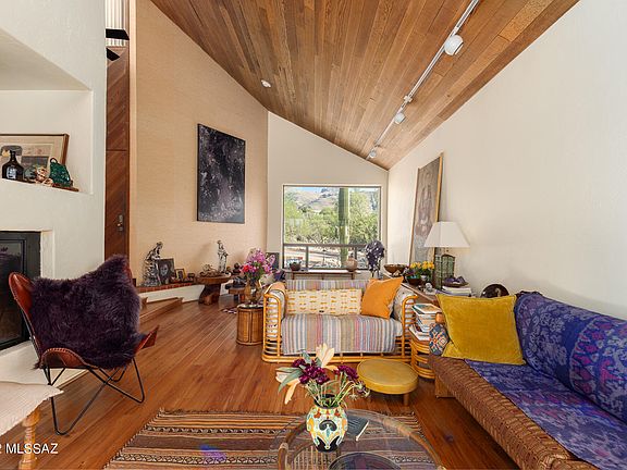 Captivating custom-built desert sanctuary located in an inspirational Catalina Foothills setting. Unobstructed city and mountain views. High ceilings and lots of natural light. There is a separate studio (artist retreat). The custom-made metal enclosure is a work of art on its own. The architect designed this multi-level home in 1978 and I would say traditional boundaries were pushed to create this unique home. There is some brick flooring inside which provide a cool surface in the summer and a warm cozy feeling in the winter. There is a two-way gas fireplace for the spacious dining area and living room. Not your typical cookie cutter. Close to Whole Foods, La Encantada Mall and Catalina Foothills Schools. Location is convenient to the city and world class hiking is nearby.
