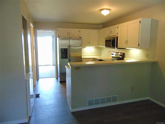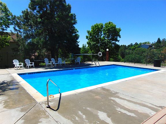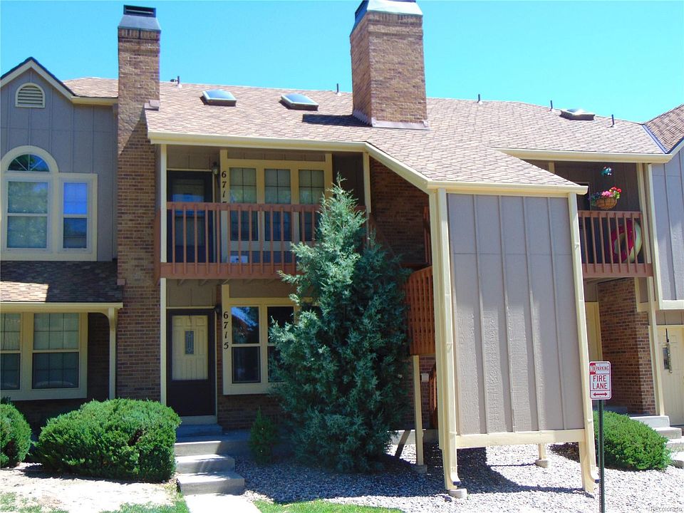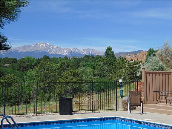Hard to find ground level condo that has recently been beautifully renovated: new interior paint; new stylish engineered wood floors in living room, kitchen and bathroom; freshly painted cabinets; upgraded stainless steel appliances including side-by-side fridge, built-in microwave, smooth-top range and dishwasher; new carpet in the bedroom; and new tile surround in the shower. Private back patio with side fences and green space behind. Extra storage closet on patio and storage crawlspace. Large master closet. Beautiful pool in the complex with Pikes Peak view perfect for these hot summer days. Community clubhouse for parties. This won't last long!