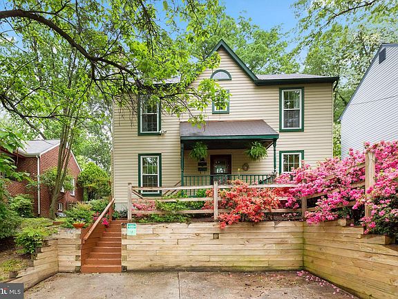 Cute farmhouse style colonial, about a mile from Metro, stroll to Old Town and Coop, across from Circle Woods, steps to Spring Park. Features include many modern plusses: bright open kitchen/dining room, large closets including a walk-in in the primary bedroom, and an en-suite primary bath. Handsome floors, modern light fixtures, main floor powder room and laundry. Pull -down steps in walk-in closet for attic access. Kitchen features ample cabinetry, peninsula bar, and new appliances. Dining area with cozy fireplace! Huge, fenced backyard with shed. Wonderful screened porch and deck: you will live out here! Parking pad for 2 vehicles. Convenient to all commuter routes: New Hampshire Ave, I-495, Red Line Metro.