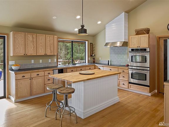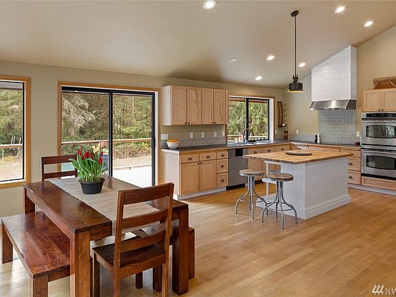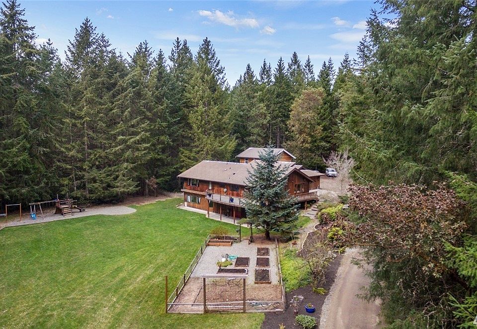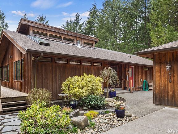 Over 5 acres. Enjoy the expansive yard - Entertain, garden, raise critters - or relax in your private retreat. This spacious 3+ bedroom home allows flexible lifestyle choices. The main level is designed for independent living - en suite Master, Den, and Utility Room. Great Room features a beautiful remodeled kitchen, walk-in pantry, magnificent stone fireplace and large dining area. Driving time to schools, shopping, restaurants, and Gig Harbor's inviting waterfront - less than 10 minutes.