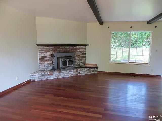 Hardwood floors, well/septic,2car garage, new paint, one bedroom separated from two master bedrooms. new front door, new windows, large corner fireplace