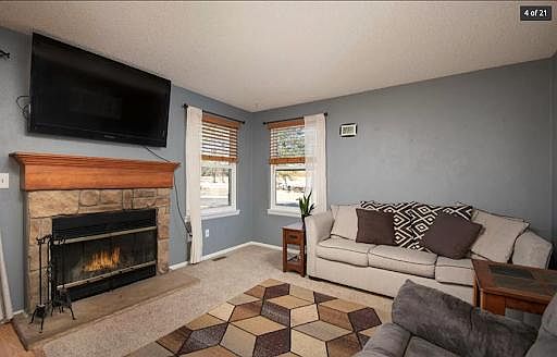 Great corner condo building! Open floorplan with lots of natural light. Living room with cozy wood burning fireplace. Kitchen with newer appliances included. 2 large master suites, each bedroom has a full bath and double closets. Nice patio with storage space. Mature trees all around, private location. New furnace, nice central A/C. Full sized washer and dryer included! Amazing location with easy access to C470, local parks, golf courses, mountain adventures, shopping, dining, parks and trails!