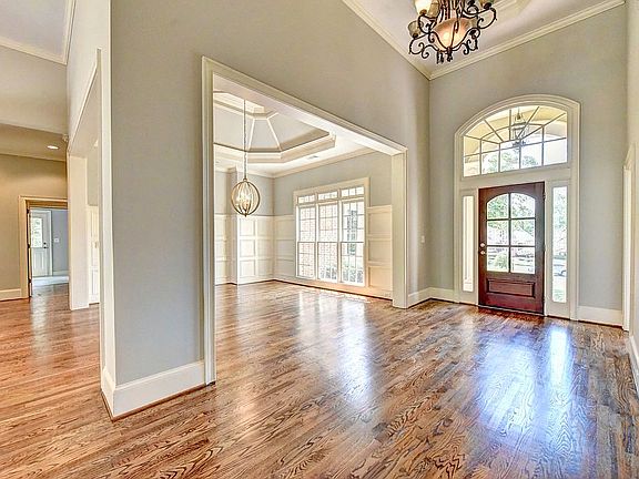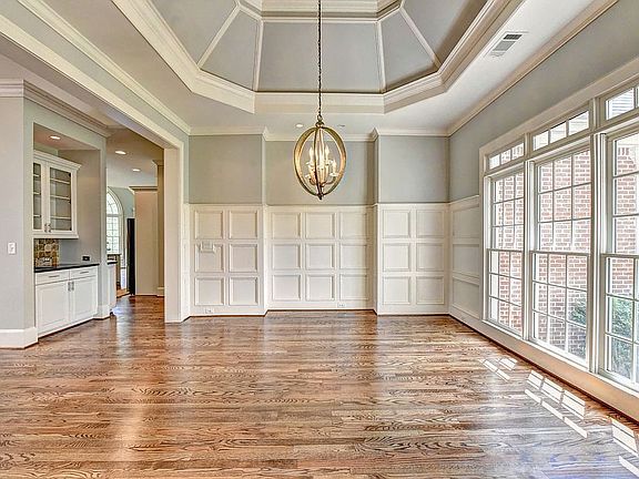 - Interior: 10 ft+ Ceil Main, 2-Story Foyer, Double Vnty Other, Entrance Foyer, Trey Ceilings, 9 ft + Ceil Lower, Bookcases, Disp Attic Stairs, His & Her Closets