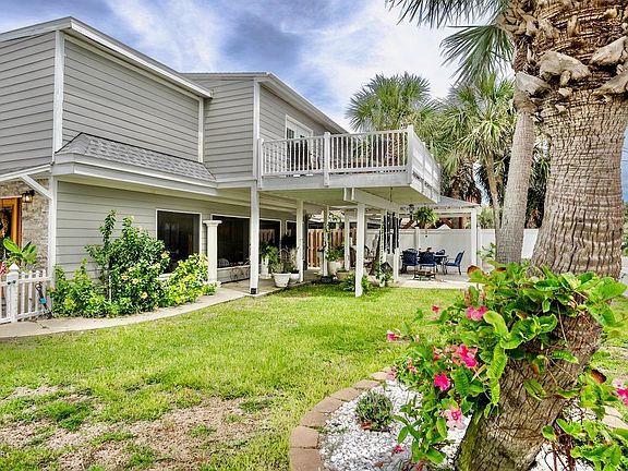 'CURRENTLY UNDER CONTRACT, SELLER ACCEPTING BACKUP OFFERS' Gulf Views! Great beach house across the street from the sandy white beaches. .Just steps away from being able to take a dip in the emerald waters. The main entry has a beautiful etched glass door. The open living area has 18 ft beamed ceilings and features a wood burning fireplace with stone accents, creating a cozy ambiance. .The kitchen is open to the living room with glass sliding doors opening to the large sun room. The first floor has 4 bedrooms and is all tiled. The bedrooms are connected with Jack and Jill bathrooms, providing an on suite for all. There is a spacious laundry room in the rear of the 2 car carport which is accessible from the doorway exiting the hallway from the bedroom areas.