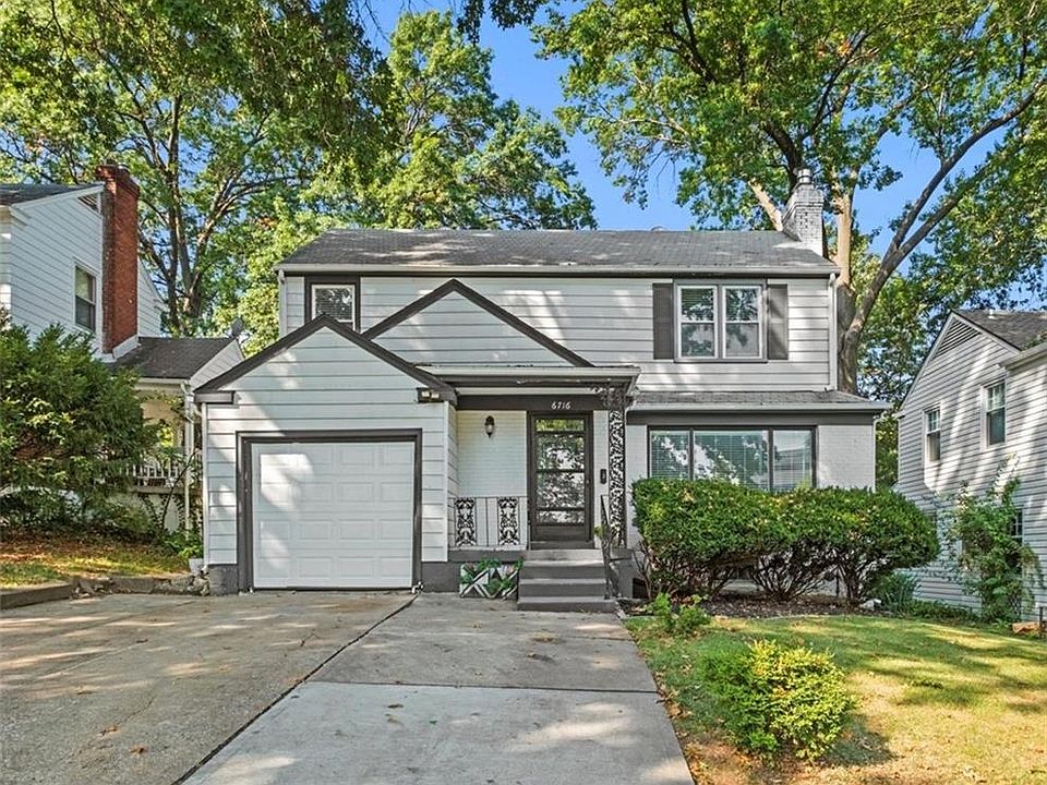 NEW roof, NEW sewer liner, NEW electrical panel! WOW! Situated on a generous lot with incredible outdoor entertaining space, this 3 bed, 2.5 bath property boasts a new white granite kitchen by Tom French Remodeling (2022) and an open floor plan. A fresh neutral paint palette and new thermal windows (2020) adorn the home in bright natural light. Bonus sunroom on main level walks out to the huge back yard featuring three outdoor deck seating areas. Kitchen features new soft close cabinets, large granite island and a separate coffee nook with high quality pull out drawers. You'll be amazed by the double closets and charming trim work in the primary bedroom. Full, dry basement for extra storage. SS appliances stay. Mid-century vibed fireplace on main level. Hardwood floors throughout both levels. Expanded driveway and spacious single car garage. Don't miss this opportunity to live in the heart of KC! Walkable to all things Brookside, Waldo and Crestwood local neighborhoods! Assumable loan opportunity at 4.75% interest rate!