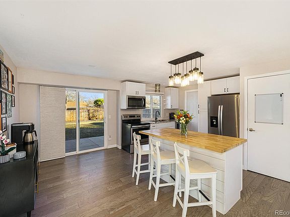 With an oversized lot, easy access to old town Arvada and recent updates, this 2 bedroom, 1 bath ranch property is not to be missed! Inside you'll find a light and bright open concept living area featuring a well appointed kitchen, dining space, and cozy family room. The gourmet kitchen is functionally designed with oversized cabinets and boasts stainless steel appliances, solid surface counters, and a large island for entertaining guests and additional seating. Step around the corner to find two ample sized bedrooms with large closets and an en suite bath with deep soaking tub and updated tile and vanities. The large lot provides a park-like backyard, and an oversized patio that is perfect for grilling and relaxing all summer with friends and family. Additional features include newer HVAC system (2018), Newer hot water heater (2018), insulated garage door, New window coverings, luxury composite flooring throughout main floor, solid surface countertops, double pane windows, front and rear irrigated landscaping and an oversized two car garage. Located in the coveted Lamar Heights neighborhood, the location has lots of neighborhood amenities including numerous parks, close proximity to schools, and easy access to both Old Town Arvada, and Denver. Don't miss the chance to make this your new home – reach out to schedule a viewing today!