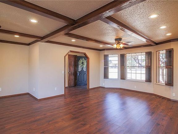 What a beautifully maintained 3 BR 2 Bath home with lots of updates and tons of storage. Great curb appeal and as you enter the front door, you will be impressed with the updated wood-look laminate flooring and exposed beams in the large living/dining area. The living area has updated can lighting, surround sound, a wood-burning fireplace and built-in cabinets and shelves. Living room is open to the large kitchen and breakfast area with a window seat and built-in desk and cabinets. Plenty of storage in this kitchen with newer appliances, and refrigerator can stay with acceptable offer. Remodeled baths with new plumbing fixtures and tile, and newer carpet in bedrooms really add to the appeal of this home. In the garage, you will find more storage, a new garage door with wi-fi opener, and new hot water tank. Great location close to restaurants, shopping, parks and Lake Hefner. You know this one will not last, so schedule your showing today.