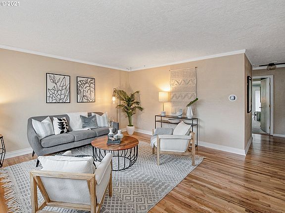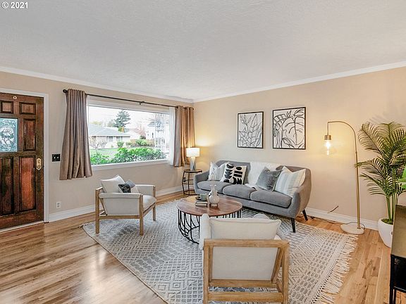 University Park mid-century on oversized lot! Open concept one level living filled with light. Spacious primary suite w/walk in shower and french doors to fully fenced yard w/patio,fruit trees and pizza oven! Attached garage and bonus room- perfect for office, hobby, gym, art space. Updates include: Refinished hardwood floors, new furnace, AC,roof,water heater. 3 spacious sheds. Fantastic location-just step out your door to St Johns shops and restaurants,food carts, New Seasons and U of P! [Home Energy Score = 4. HES Report at https://rpt.greenbuildingregistry.com/hes/OR10196098]