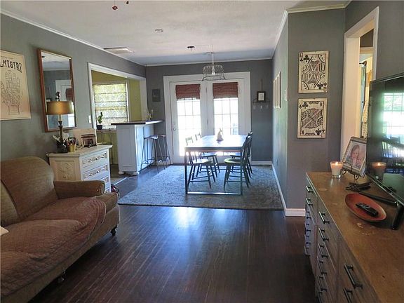 Wonderful bungalow in a great location!! Original wood floors, white woodwork, updated lighting. Double French doors look out to large backyard with Large deck -perfect place to entertain! . Updated kitchen and Bathroom. Nice open flow in living and dining areas and open to kitchen with breakfast bar made out of beautiful wood! slate floors in kitchen and bath. Good sized bedrooms. Indoor Laundry/Storage facility! Lovely Front porch and sitting area. HVAC 2 years old and Roof updated in 2012. Make this your first home! very nice neighborhood.