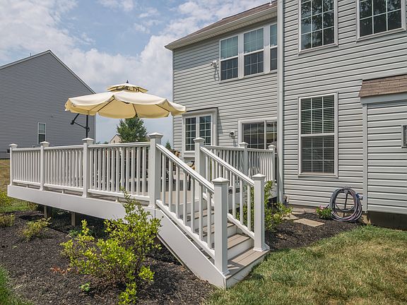 This 5-yr young Devereux has curb appeal and then some! With its inviting 2-story entry foyer & traditional yet open floorplan - and no wait for new construction - this is the home you've been waiting for! A split staircase allows for a very open feel as you make your way to a grand 2-story family room with a gas fireplace surrounded by windows. A large cutout opens to the eat-in kitchen with stainless steel appliances, including double wall ovens, built-in microwave, and gas cooktop. Plenty of workspace on the granite counters & a center island with seating. Sliders lead out to the back deck with views of the treeline and shed. A separate library allows for a peaceful retreat. Upstairs, the luxurious owner's suite with a private bath features double sinks, a separate shower & large soaking tub. 3 other bedrooms, full bath & laundry room round out the living space on this level. Full finished basement with a full bath and an office with walk in closets, with egress window installed & plumbed for 1/2 bath.