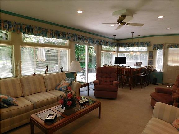 Very pretty home ranch style located on a very pretty mostly level lot. Rear patio, nicely landscaped, outstanding great room located off of the kitchen with oak style bar area and lit by a wall of windows on 3 sides. Very nicely maintained home which will include major appliances in the kitchen which has a breakfast bar and additional work/computer/study area. Large living room is now being used as a dining room because of the size of the great room. Dont miss this easy living ranch.