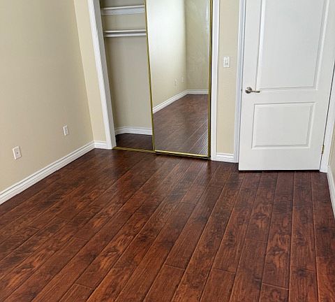 hardwood floor in bedroom, hallway and living room