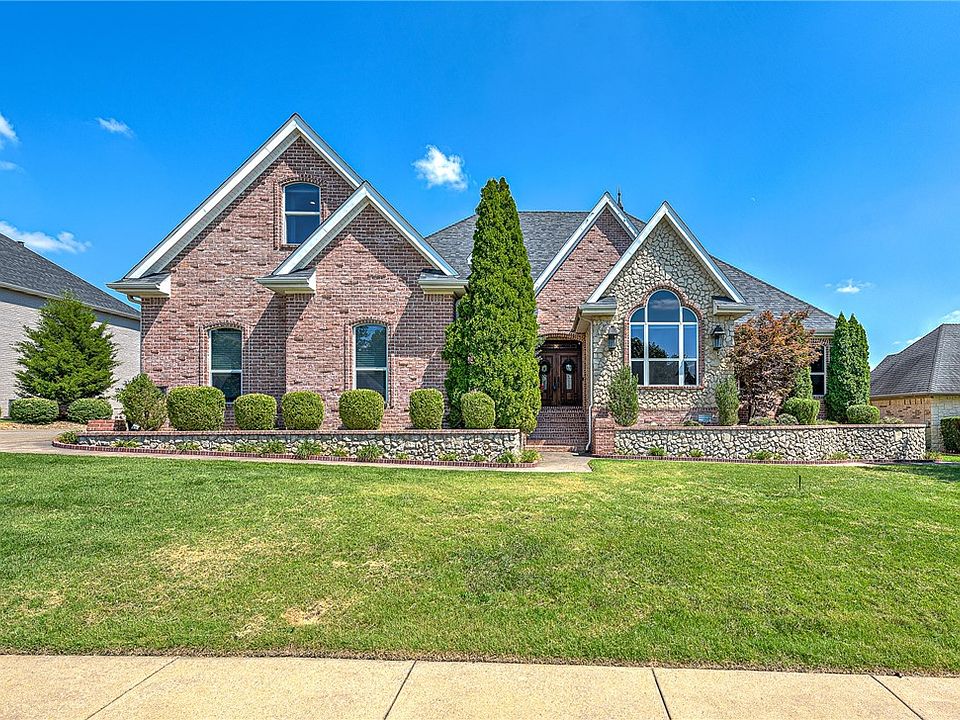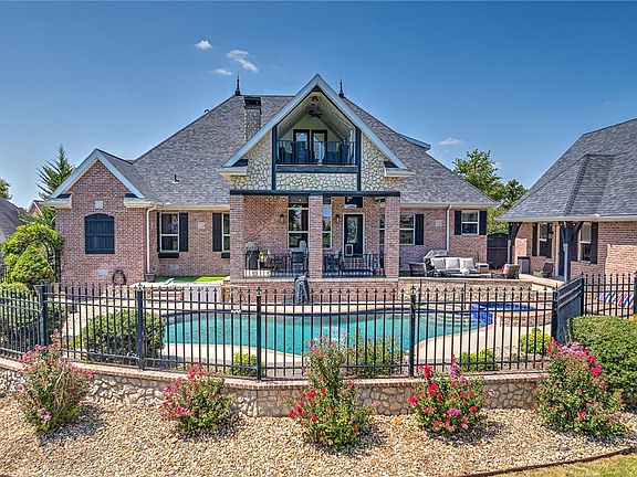 Amazing home in Shadow Valley with picturesque panoramic views of Shadow Valley Lake, Holes 3 & 4 on the beautiful SV Golf Course. Must-see home in one of the most sought after location in NWA. When you visit head upstairs, stop by the bar with built in wine fridge, pass through the theatre and then head to the covered balcony and get an even better view of the golf course and the annual AMP 4th of July firework display! This home also has 4 bedrooms, 3.5 baths, a giant office, ideal to work from home, another office upstairs for dual careers. Huge media/theater room with stadium seating and 115” movie screen. Offers 4 car garage, gunite swimming pool with built in hot tub. Newer roof, appliances, and 2 complete HVAC systems. The detached 2 car garage is heated and cooled, has a workshop area with built in cabinets and closets. Large flex room upstairs perfect for office, kids place, workout room, so many options!! Custom made iron fence with brick base surrounding the pool area. Tennis membership included!