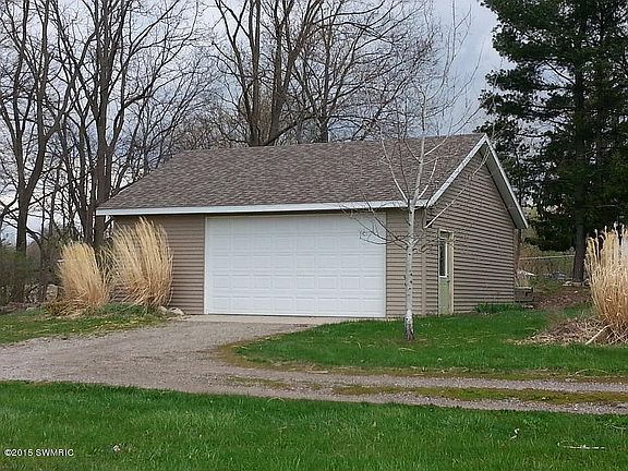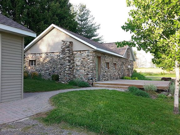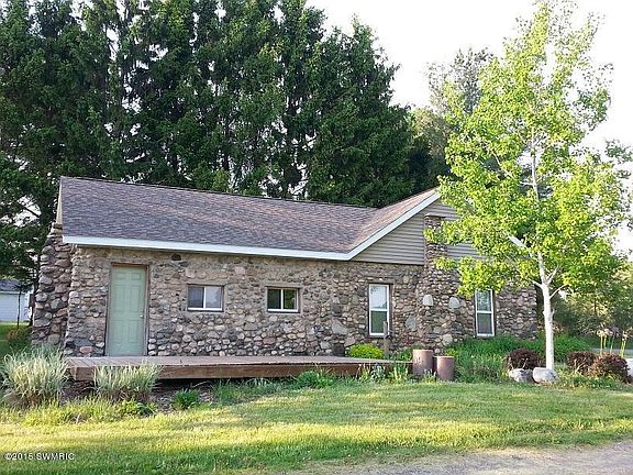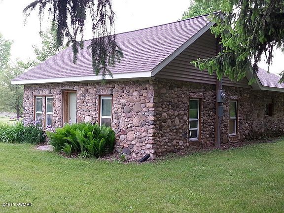 Completely redone two-bedroom stone ranch on a picturesque 1.27 acre lot. Improvements inside and out include well, septic, roof and trusses, and 2-stall garage. Vaulted ceilings make the open floor plan spacious. Maple kitchen cabinets include 2-3 yr-old refrigerator and dishwasher. Added architectural elements such as interior stone walls, cherry bookcase, oak shelf and solid oak panel doors separate this home from the typical. The large deck offers wonderful country views. Not much to do but enjoy this move-in doll house! Constantine schools. Seller is related to listing agent.