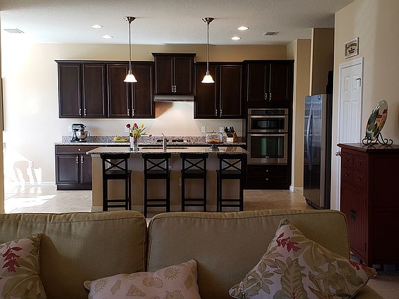 Welcome Home! This spacious 3 bedroom 3.5 bathroom home is perfect for entertaining. Cook in the kitchen of your dreams feautring an extended nook, large island, gourmet kitchen, GAS cooktop, built-in Microwave/Oven combo, pendant lights, 42"cabinets and granite counters. The living room is enormous with plenty of space for over-sized furniture. The home fractures a formal dining, perfect to share family dinners. There's a half bathroom close to the entry of the home suitable for guests. Upstairs there's a grand loft, 2 Master bedrooms and 3 bathrooms. The main master features a very large walk-in closet, dual sinks, separate shower and tub. The second master is also a great size with it's own private bath. The large screened lanai has it's own outdoor kitchen and leads outside to a custom fire pit perfect to enjoy late night fires. This community has several play areas and a beautiful community school. It's walking distance to the nearest high school and to Publix. Scheduled your showing today