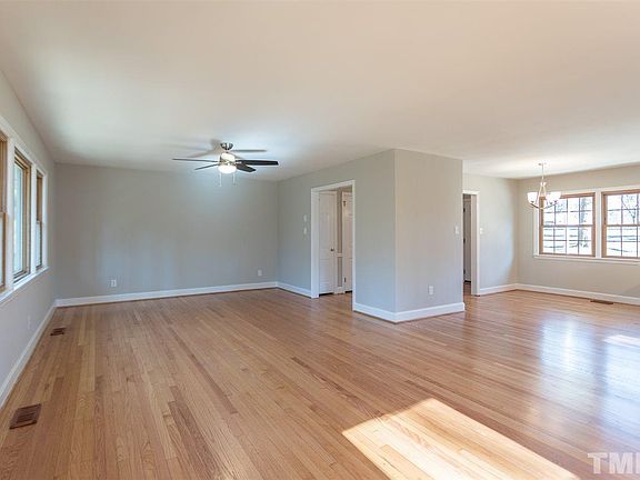 GORGEOUS one level living in North Raleigh on almost an Acre! Features a bright open floor plan & upgrades galore including a custom designer kitchen with new shaker cabinets, glass tile back splash, granite & Stainless Steel appliances. Kitchen open to Family Room. Beautiful refinished hardwood flooring on 1st floor. NEW plush carpet & interior & exterior designer paint. Awesome master with new vanity and tiled shower. Minutes to Crabtree, North Hills, I-440 & I-540 and Downtown Raleigh. Move in & enjoy!