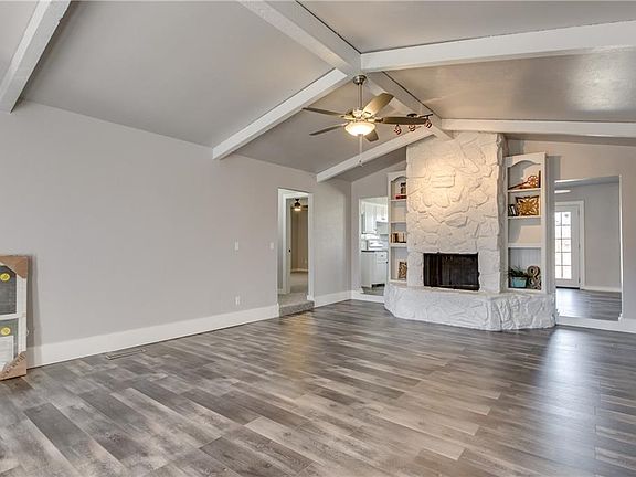 Charming home in great location! Totally remodeled with designer touches and finishes. Updates include, but are not limited to: All paint inside and out, All new light fixtures and fans, New carpet, All windows, New interior doors, cabinet doors, granite, granite, laminate flooring and tile! Kitchen has NEW granite counter tops, white, painted cabinetry, a pantry(seller will finish shelving) and new backsplash. Great storage throughout this home. Open living room with a lovely, rock fireplace, cathedral ceiling and wood beam accents. Master suite has an updated shower and two closets. Secondary bedrooms are just the perfect size and have new carpet! Come take a look at this centrally located home close to NW Expressway, shopping and restaurants. Seller to replace backyard fence before closing.