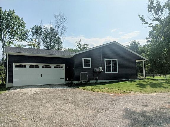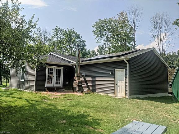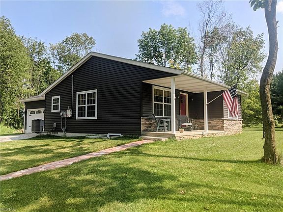 Super cute ranch nestled in a wooded setting. Open concept with butcher block island and all kitchen appliances included. 2x6 construction. Insulated attached garage. Master bedroom suite opens up to a rear patio. Basement has 2 egress windows for future finishing you may want to do. Dual heat with wood burner in the garage/electric back up. 10 panel solar system. Cut wood on site will stay. New 32 x 22 outbuilding with 9ft garage doors.