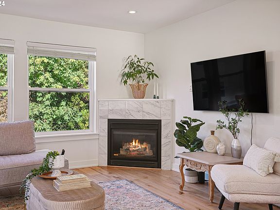 Adorable duplex-style townhouse just steps from Cathedral Park! Enjoy unobscured views of St. John’s bridge from the balcony while you sip your coffee. Entry level office/bedroom suite through the garage boasts a kitchenette, large closet, bathroom and its own private yard! Perfect for in-laws, roommates or potentially AirBnb. Spacious open concept second floor boasts a gas fireplace, newer engineered hickory hardwood floors (2019), and an updated kitchen with quartz counters, cute cabinets and stainless steel appliances (2019). Top level features a spacious primary bedroom with updated ensuite bathroom as well as a second bedroom and full bath. Stone's throw to downtown St John’s and Cathedral Coffee! A true gem. [Home Energy Score = 5. HES Report at https://rpt.greenbuildingregistry.com/hes/OR10219231]