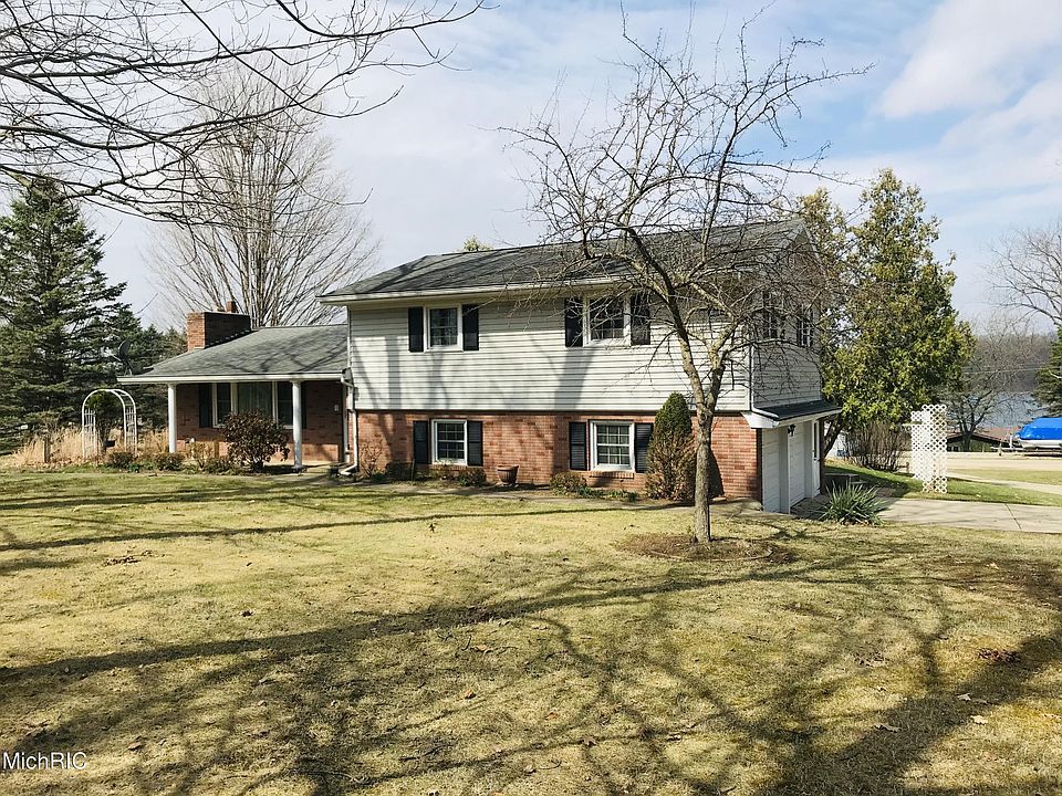 4 Bedrooms, 2 Full baths with beautiful lake views on a .89 acre lot. Out in the country with town ship taxes. This home has many amenities including: 2 car attached garage, 2 paved driveways, replacement windows, fireplace in the living room, nice 3 season room with beautiful views of the lake, storage shed, very close to the public access of Thompson Lake. Seems like an extremely solid home, the previous owner lived in the home for 45 years. Range, dishwasher, washer, dryer, refrigerator all stay. A little updating and this could be your dream home! Priced to sell!