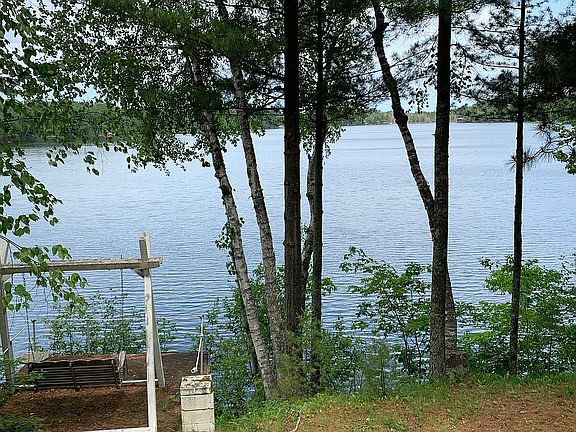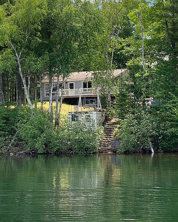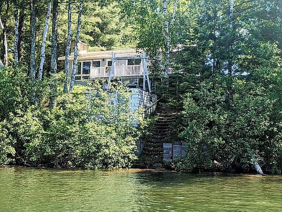 Single story with walkout basement. 2 bed, 2 bath, 2 fireplaces, detached garage, shed, small sauna building, waterfront.