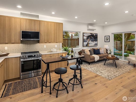 Crafted by Hauslebauer, this newly built two-story residence balances thoughtful design with refined comfort. Sunlit interiors open to generous living and dining spaces anchored by a chef’s kitchen with premium appliances and bespoke cabinetry. Glass doors invite seamless connection to the private patio and expansive fenced yard where a beautiful maple tree offers shade and character. Upstairs, the primary suite frames views of the Seattle skyline and features a spa-like bath with heated floors and dual vanities. Secondary bedrooms and upper-level laundry provide ease of daily living, while an attached garage with EV charging adds modern convenience. Parks and neighborhood dining are just a short stroll away.